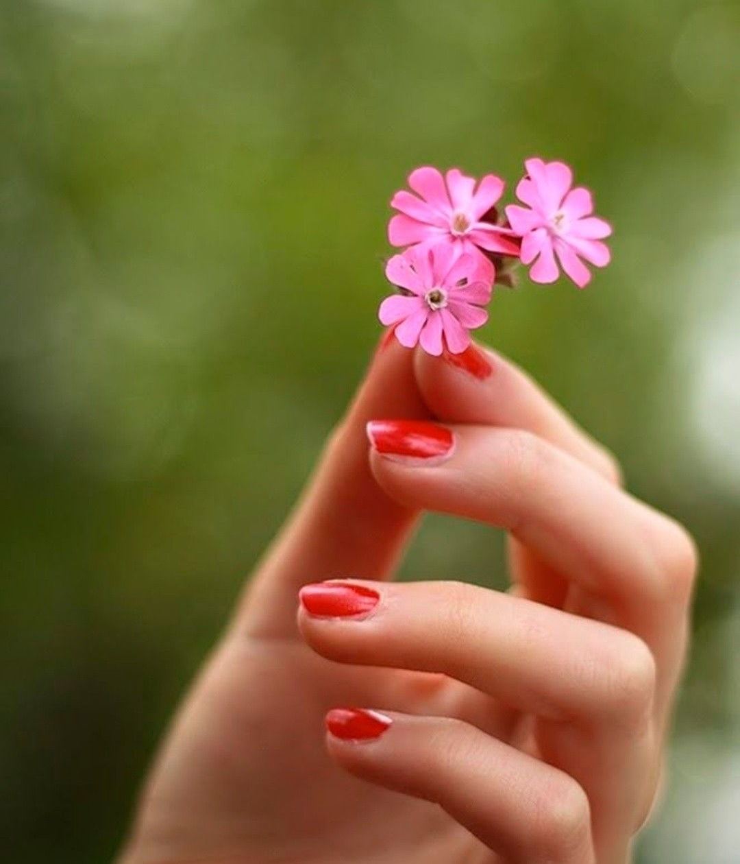 عکس زمینە ی شگفت انگیز از گل رز سرخ در دستی با لاک قرمز