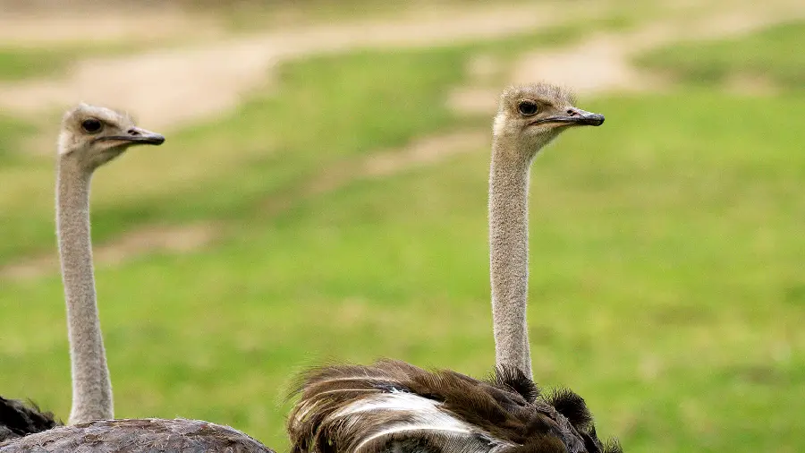 تصویر زمینه باکیفیت از دو شترمرغ در میان مزرعه