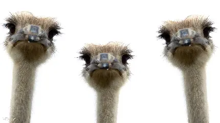 بک گراندای از سه شترمرغ سیاه و نگرنده در کنار هم