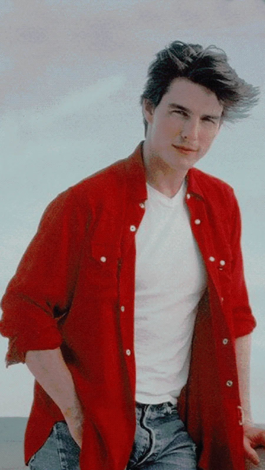 والپیپر برای گوشی از تام کروز با تیپ تیشرت سفید و لباس قرمز