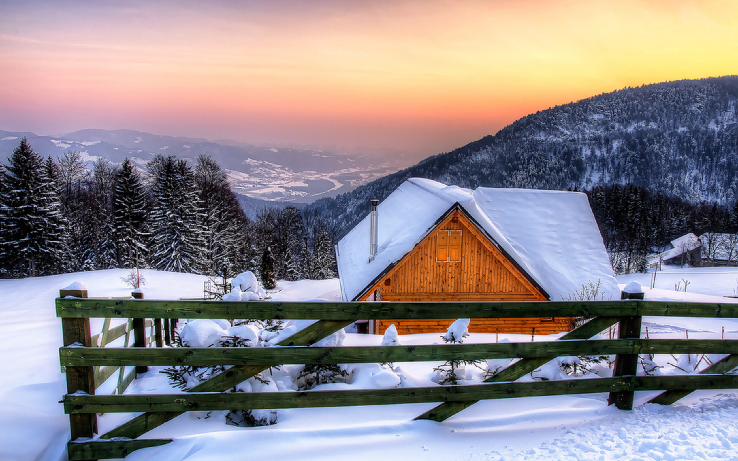 عکس استوک کلبه برفی در فصل زمستان با بالاترین کیفیت