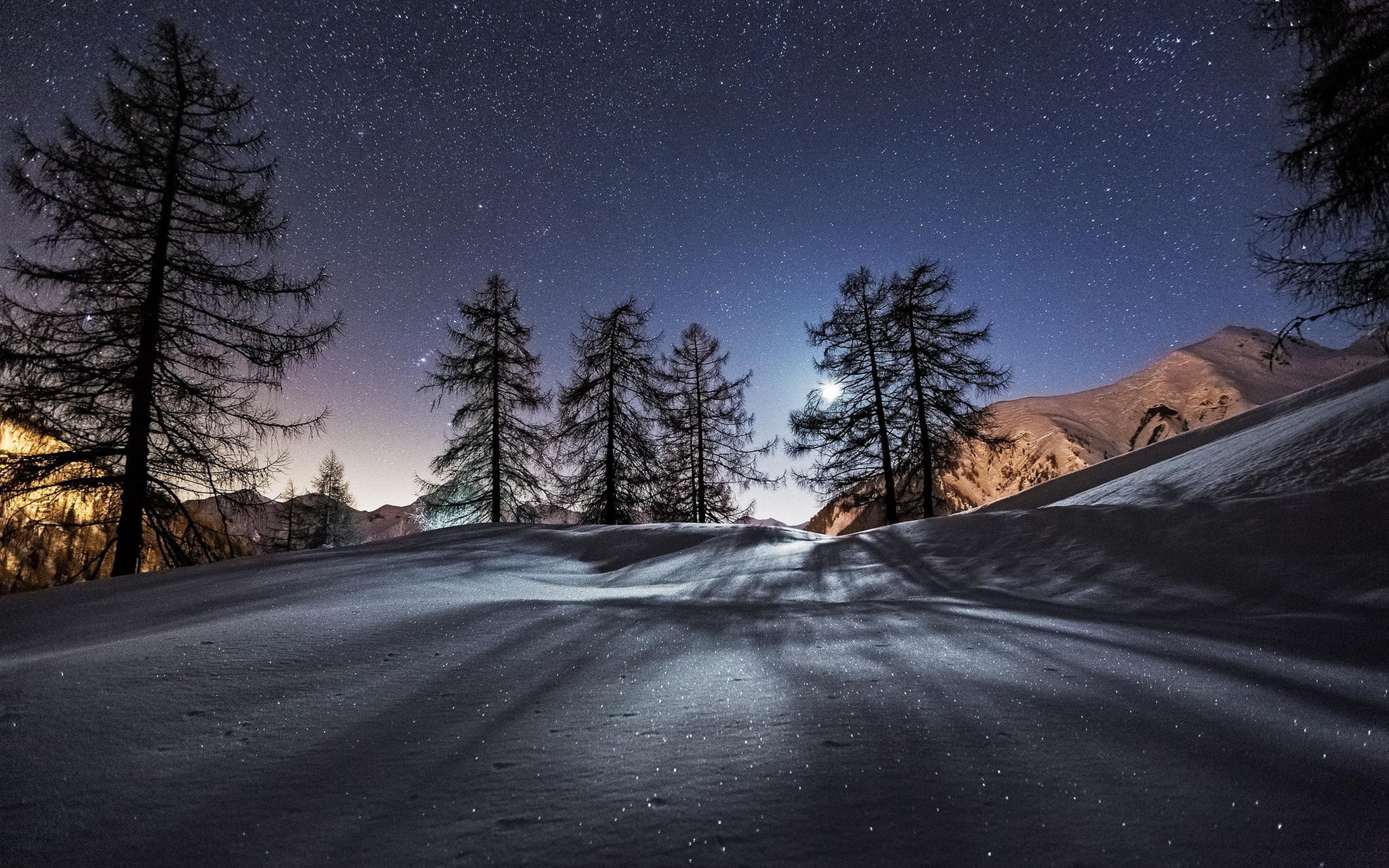تصویر استوک از منظره شبانه رویایی فصل زمستان full HD