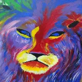 تصویر نقاشی هنری شیر با یال های رنگی فوویسم
