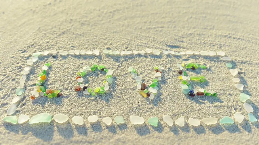 سنگهای شیشهای ساحل شفاف به شکل عکس نوشته LOVE