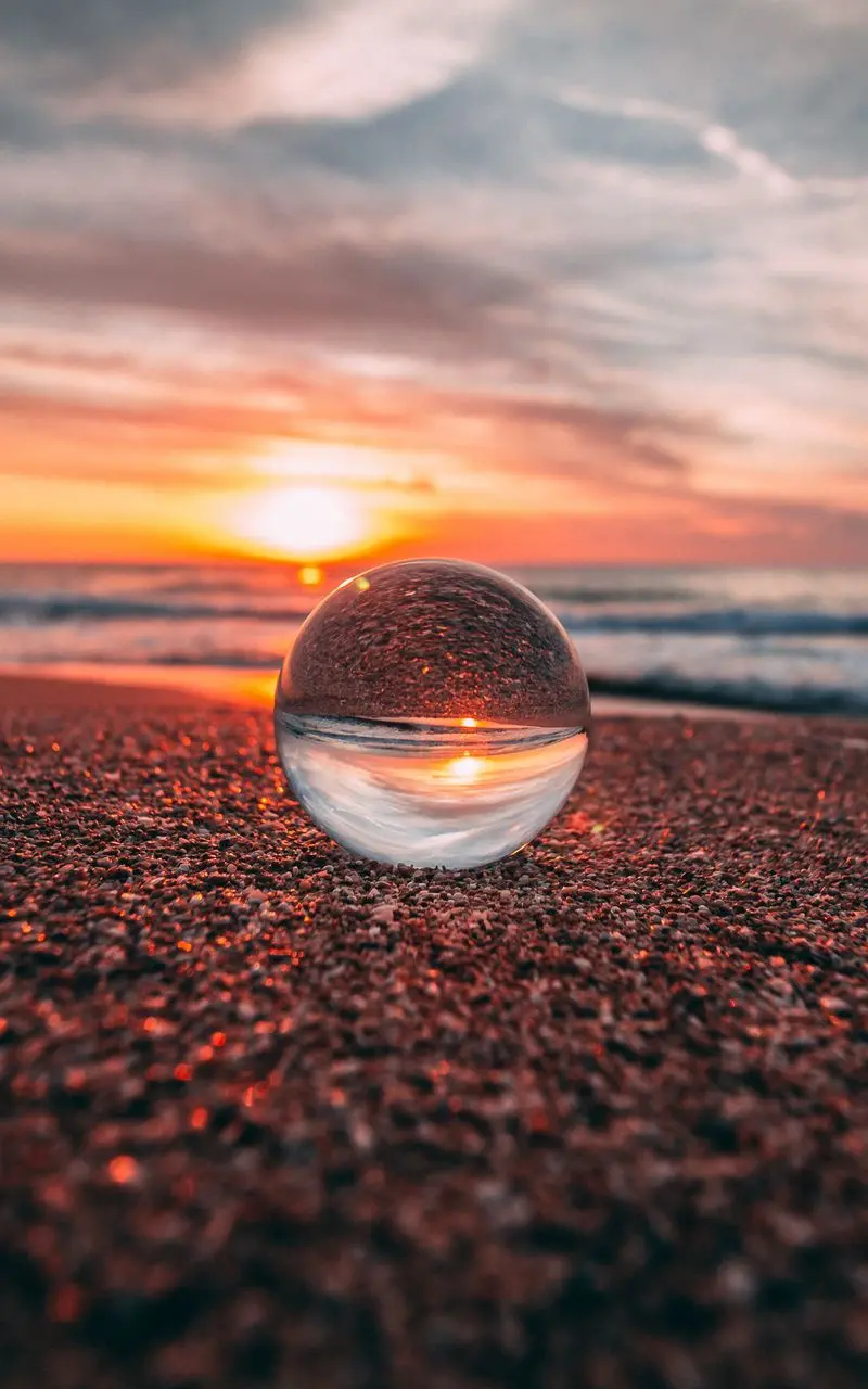 عکس سنگ شیشه دریایی نارنجی رنگ در غروب خورشید شفاف