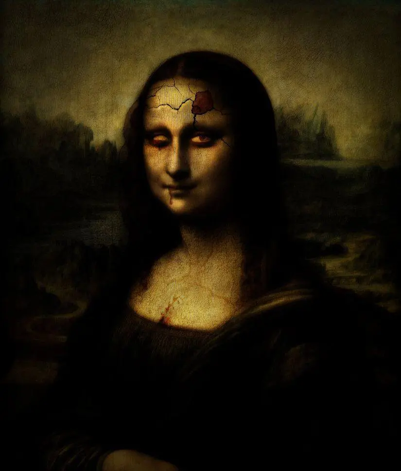 فتوشاپ ترسناک تابلو نقاشی معروف داوینچی به نام مونالیزا