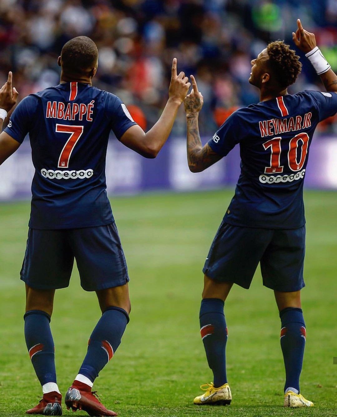 دانلود عکس زمینە خوشنما از نیمار و امباپه دو دست خم بە پشت و یک پا بە جلو