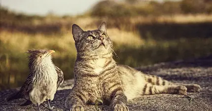 داغ ترین تصویر از گربه و پرنده جالب در کنار هم