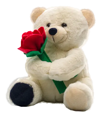 دانلود عکس خرس عروسکی ناز با گل رز نمدی قرمز PNG