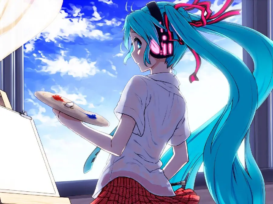 انیمه دختر نقاش در حال کشیدن نقاشی