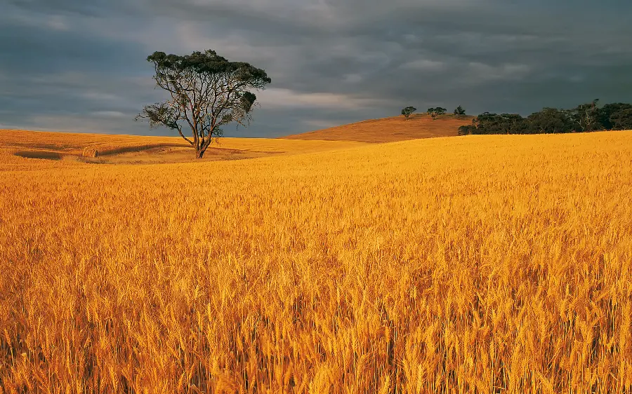 زیباترین عکس مزرعه گندم در کنار تک درخت تنها برای تصویر زمینه