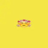 والپیپر کیوت از ایموجی خوشگل و زیبا با گل های صورتی روی سر آن