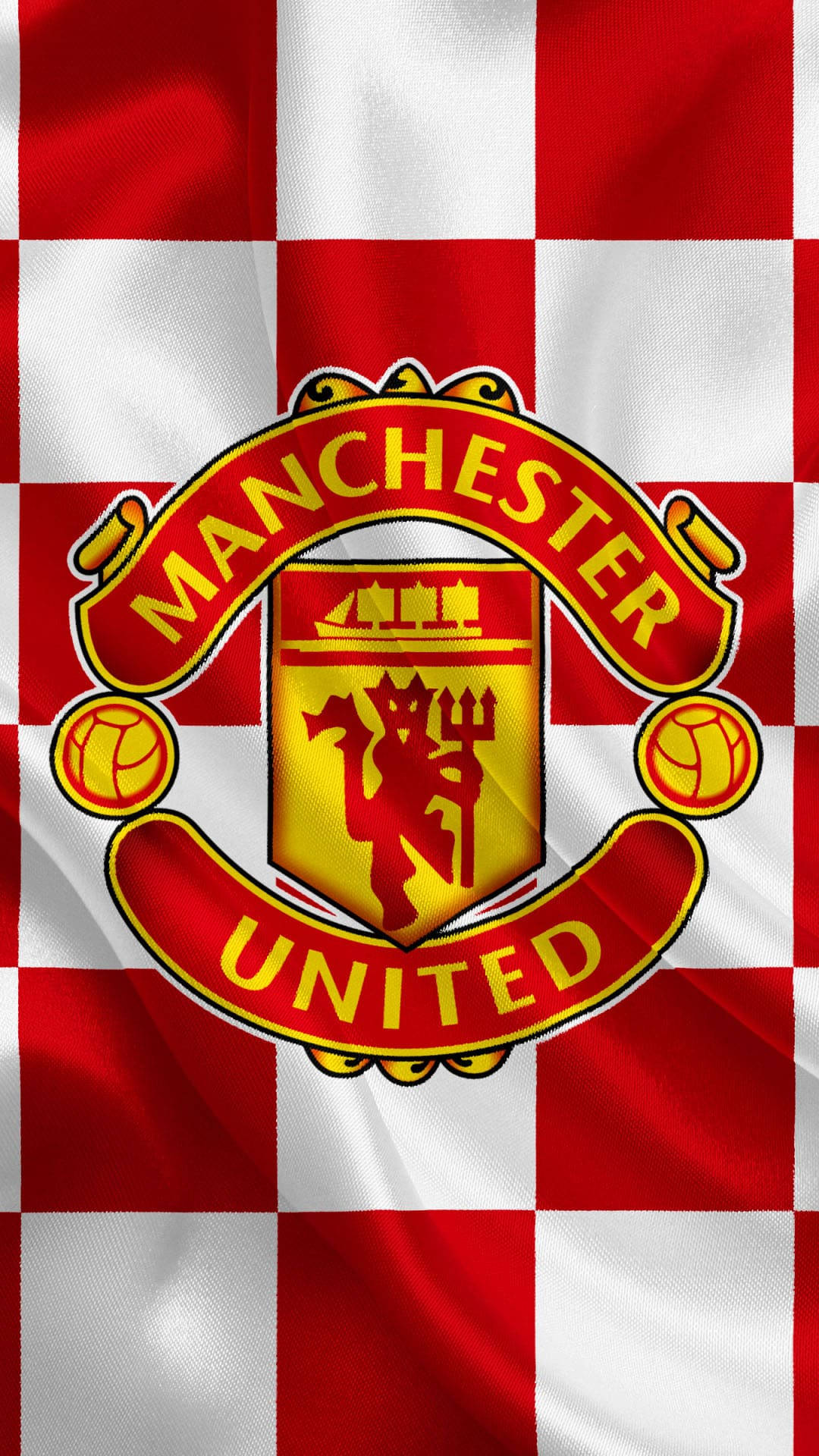 دانلود عکس زمینه و والپیپر لوگو منچستر یونایتد روی پارچه شطرنجی