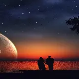 تصویر غروب به خورشید کنار ساحل زن و شوهری