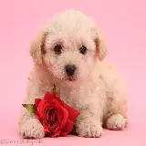 تصویر توله سگ بامزه نژاد یورکشایر تریر با گل رز ولنتاینی