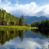 عکس پروفایل از طبیعت ناب و سحرآمیز با منظره آب زلال و کوه سرسبز
