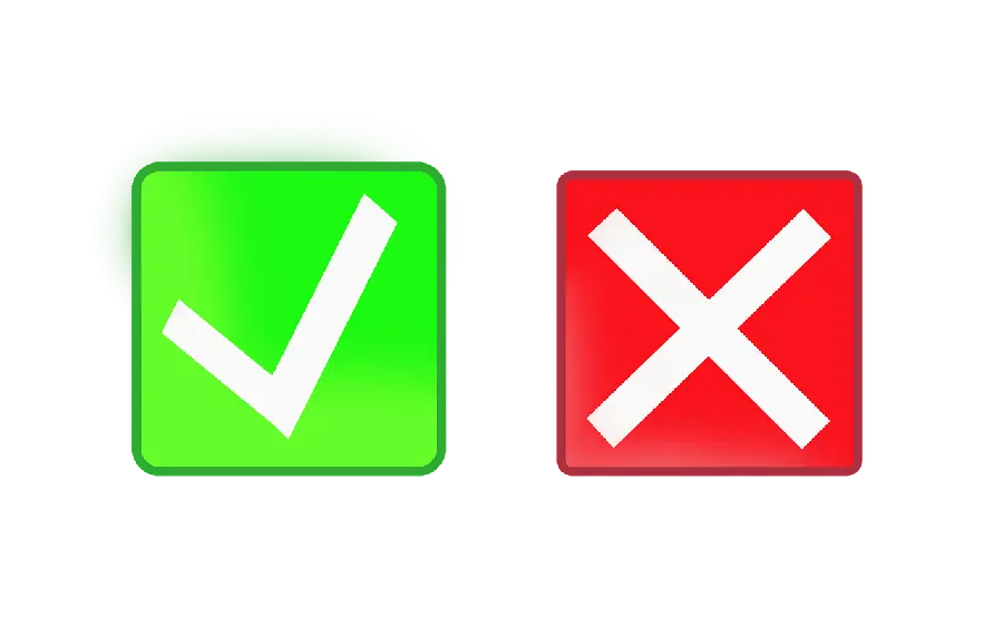 شما می توانید در این بخش از جوهره تصاویر علامت های درست و نادرست یا تیک و ضربدر با فرمت PNG و بدون زمینه و بک گراند دانلود کنید. علامتهای درست و نادرست یا تیک و ضربدر، علامتهای استفاده شده در بسیاری از جوامع برای نشان دادن صحت یا اشتباه بودن چیزی هستند. این علامتها در مخاطبان به سرعت اطلاعاتی در مورد صحت یا نادرستی یک موضوع انتقال میدهند. در بسیاری از مواقع از تیک به عنوان نماد درستی و ضربدر به عنوان نماد نادرستی استفاده میشود. البته، در برخی جوامع دیگر نمادهای متفاوتی برای نشان دادن صحت یا اشتباهی انتخاب میشوند. تیک (علامت درست): این علامت به طور عمومی برای نشان دادن صحت یا درستی چیزی استفاده میشود. به طور کلی در اکثر مواقع، تیک به معنای بله یا صحیح است. ضربدر (علامت نادرست): این علامت به عنوان نماد نادرستی یا اشتباه بودن چیزی استفاده میشود. در بیشتر مواقع، ضربدر به معنای خیر یا اشتباه است. این علامتها بسیار معمول در مدارس، آزمونها، نمودارها، نرمافزارها و بسیاری از مکانهای دیگر برای نشان دادن وضعیت صحت یا نادرستی موارد مختلف استفاده میشوند.