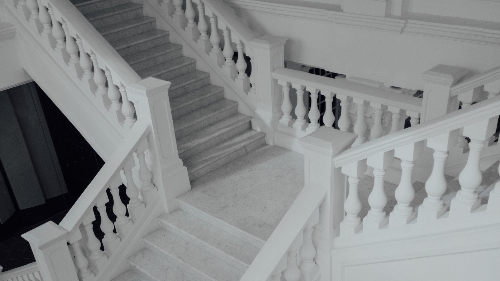 تصویر معماری سفید با پلههای شناور و کیفیت Full HD