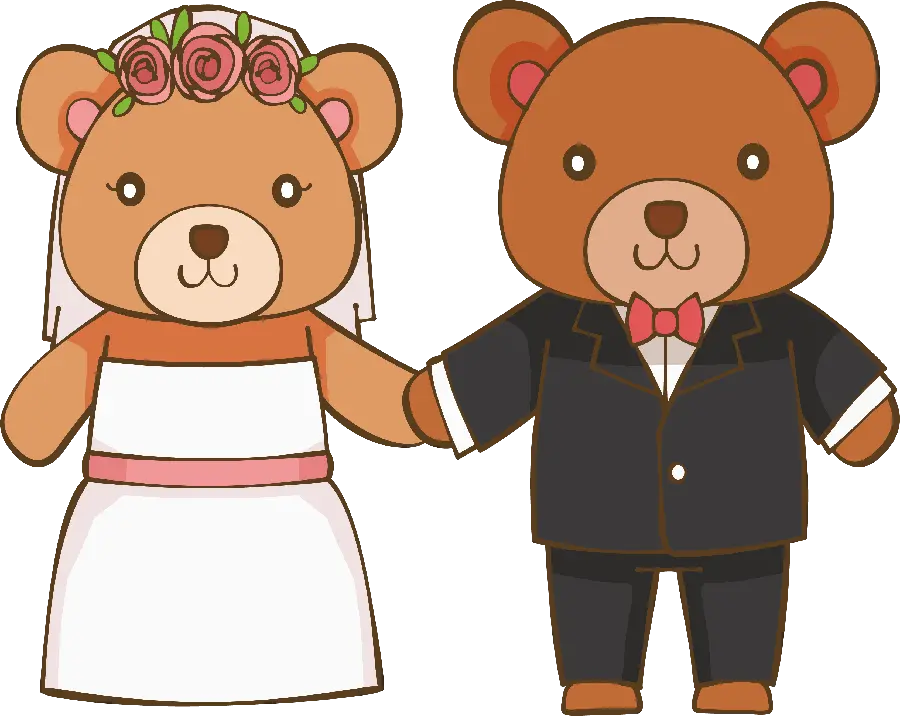 والپیپر نقاشی کارتونی خرس با تم عروس و داماد برای مراسمات ازدواج