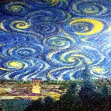 عکس هنری نقاشی آسمان رویایی در نمای شب اثر ونسان ونگوگ