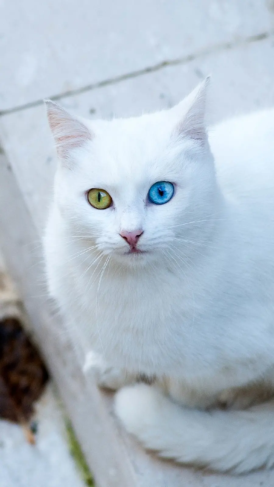 عکس ترسناک از گربه سفید چشم دو رنگ آبی و سبز با کیفیت بالا
