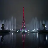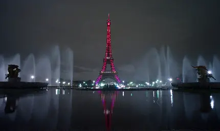 دانلود وکتور کیوت از برج ایفل صورتی رنگ و آبنماهای خروشان کنارش در شب از شهر پاریس نماد فرهنگ فرانسە