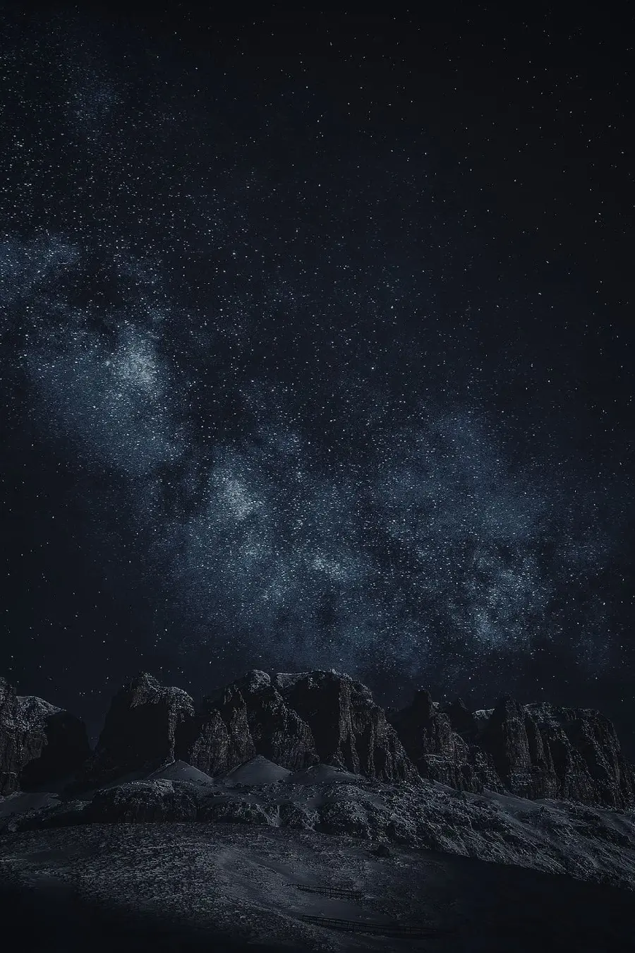 بک گراند خاکستری از کوه و آسمان پر ستاره 8K