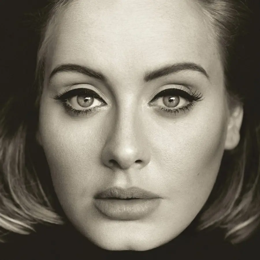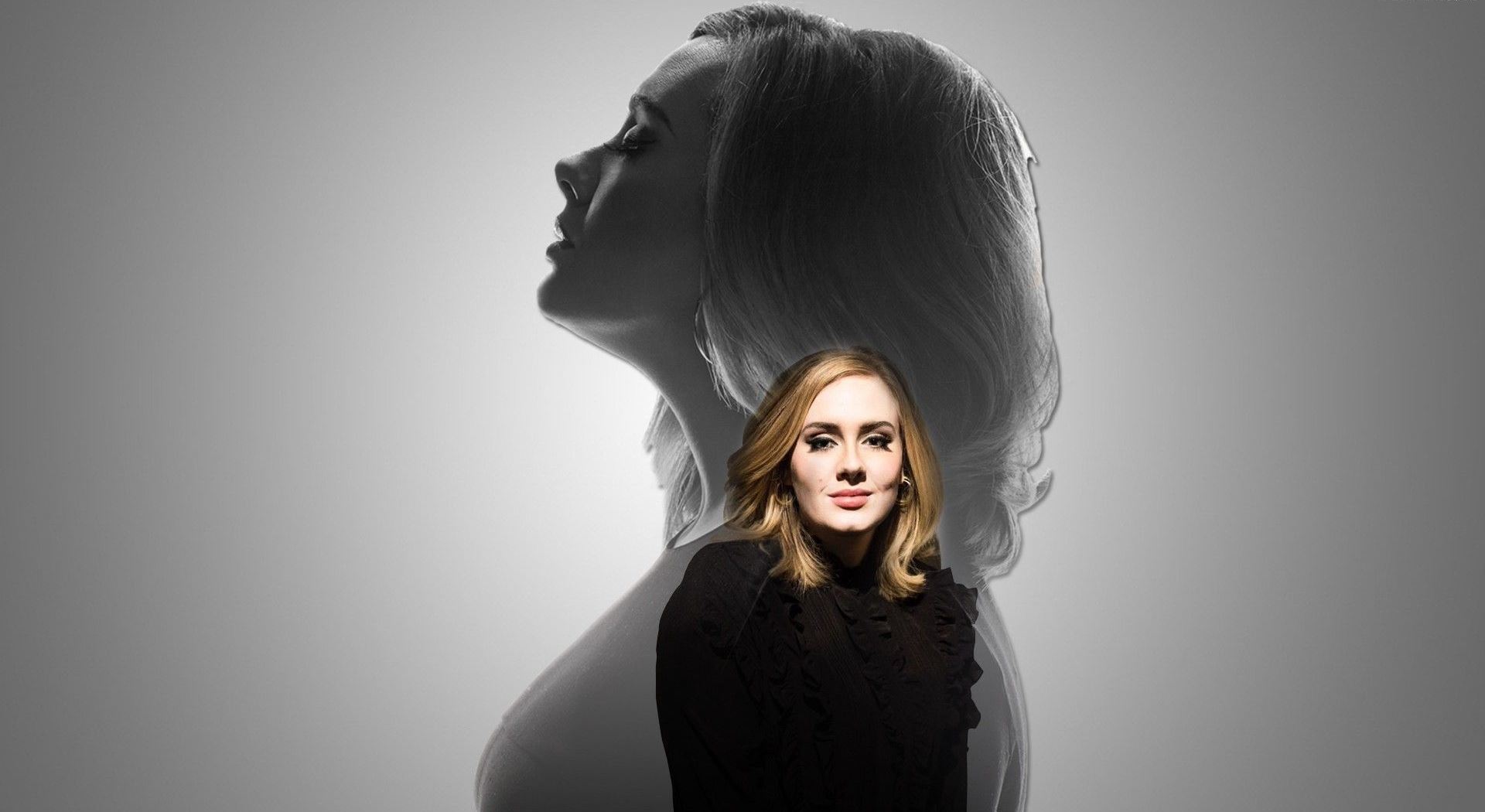 تصویر سادە و بیآلایش از نگاە ریز بە جهت چپ از ادل خوانندە بریتانیایی مشهور و زیبا