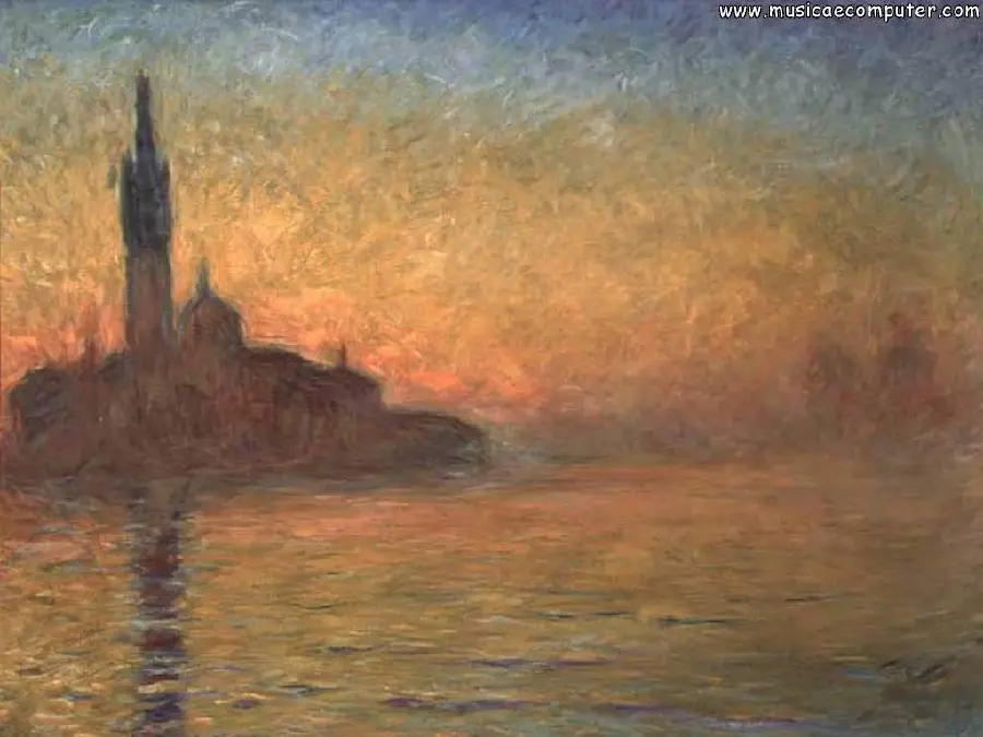 نقاشی گرگ و میش در ونیز کرپوسکول سبک امپرسیونیسم اثر کلود مونه (1840- 1926 فرانسه)