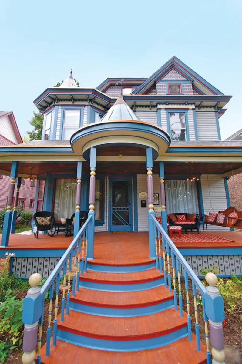 تصویر نمای ورودی و ایوان در ساختمانها به سبک معماری ویکتوریایی
