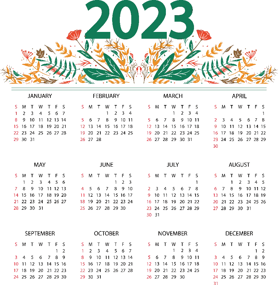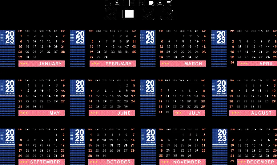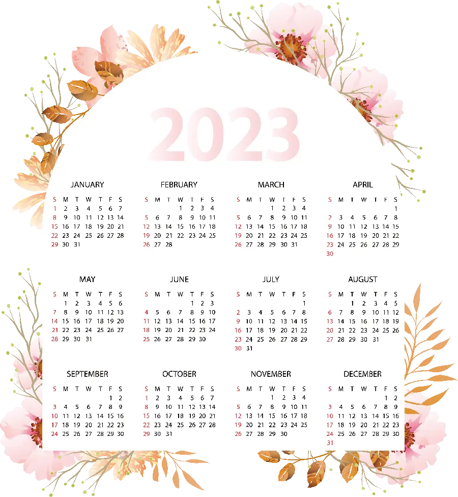 تصویر تقویم سال ۲۰۲۳ بدون پس زمینه برای چاپ