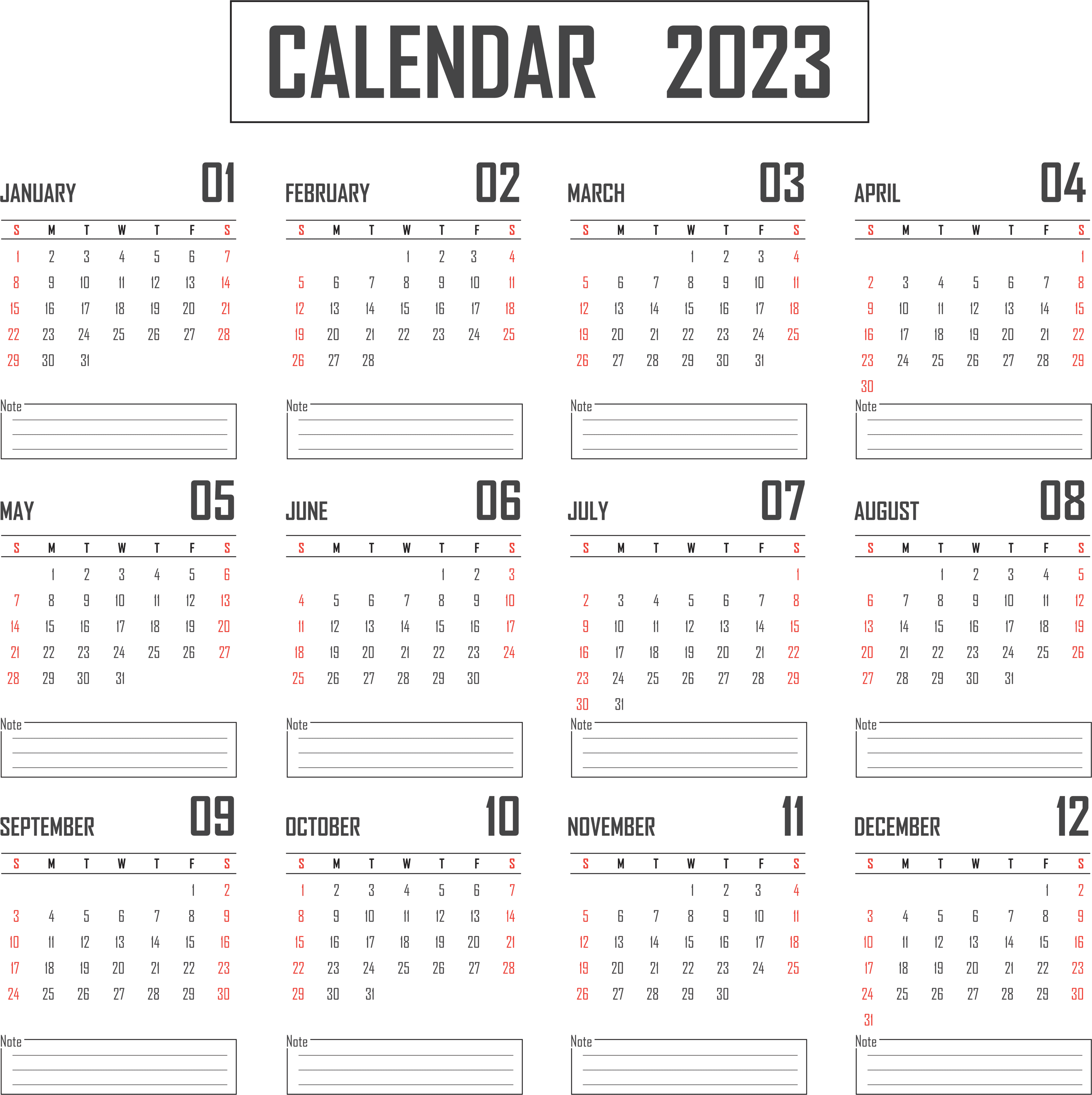 تصویری ساده از تقویم سال ۲۰۲۳ بدون پس زمینه