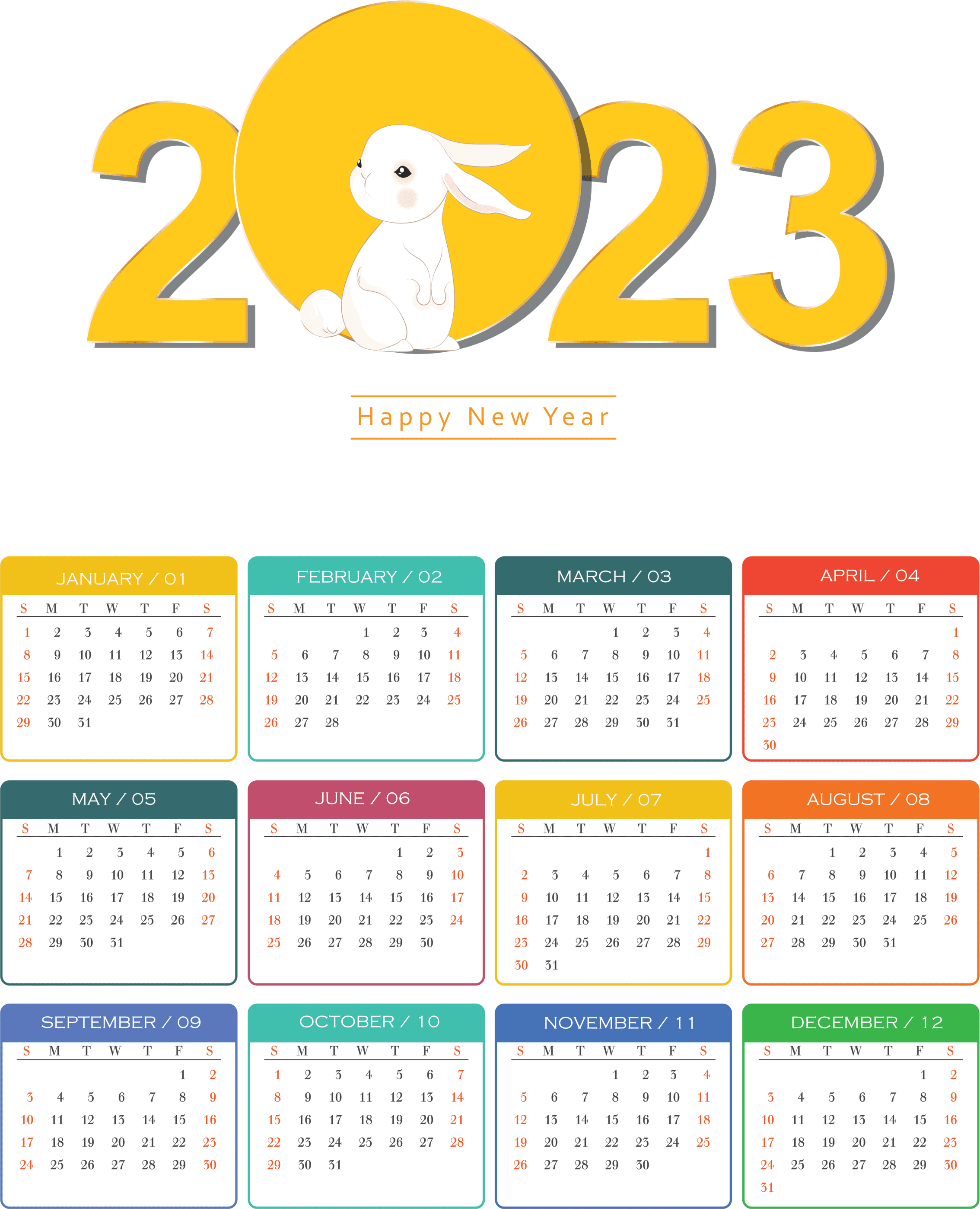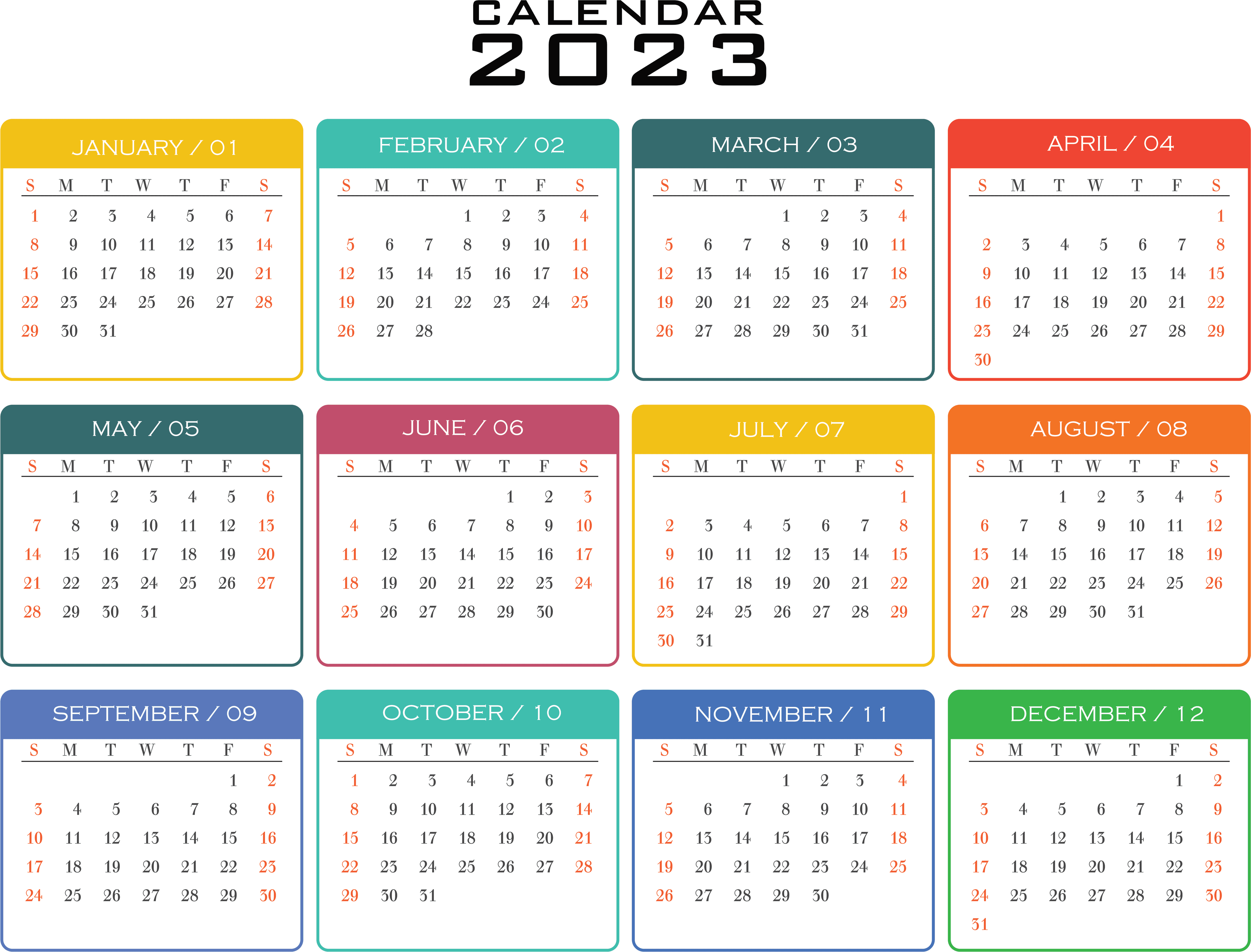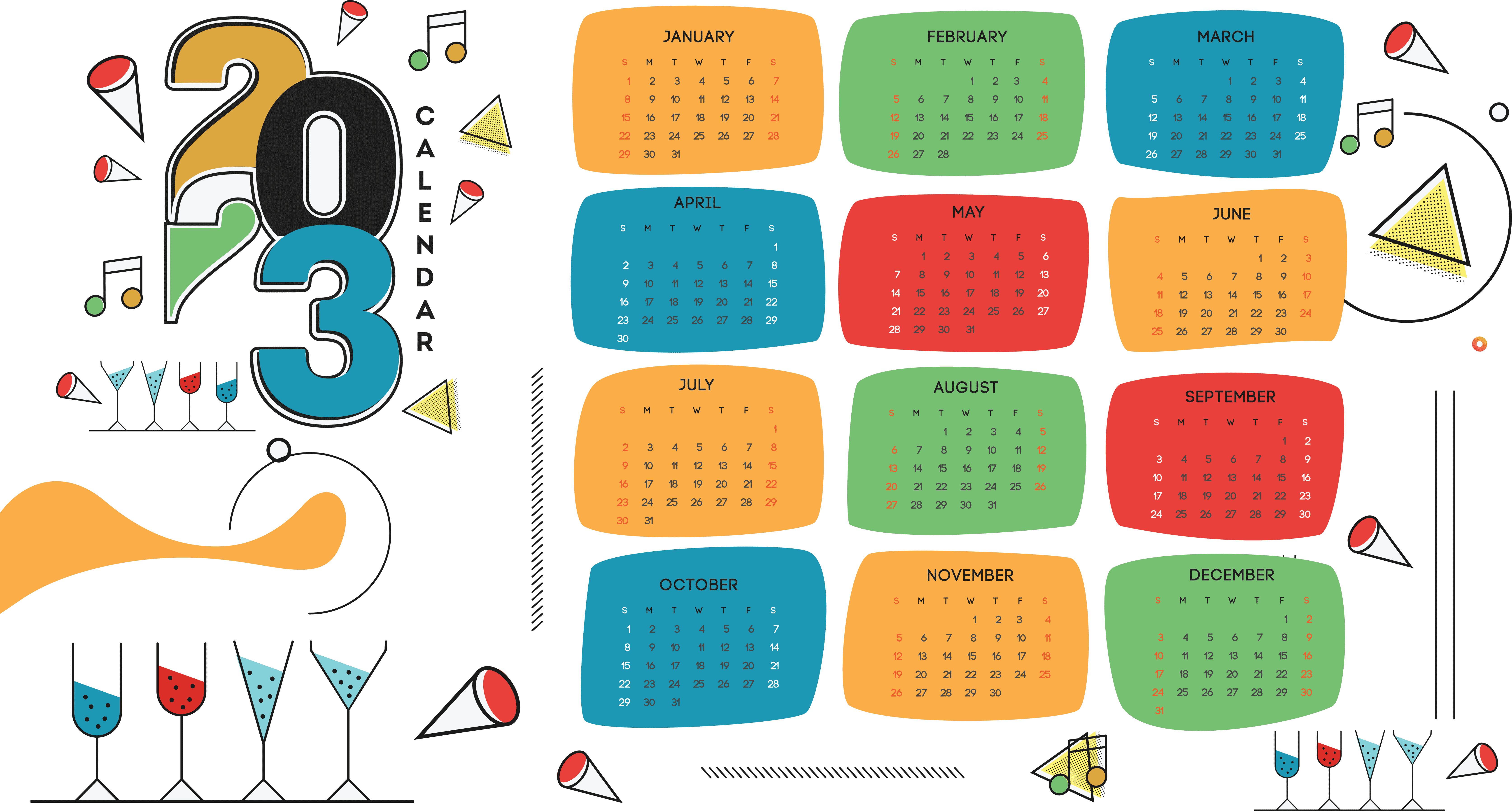 عکس تقویم میلادی رنگارنگ بدون پس زمینه 2023