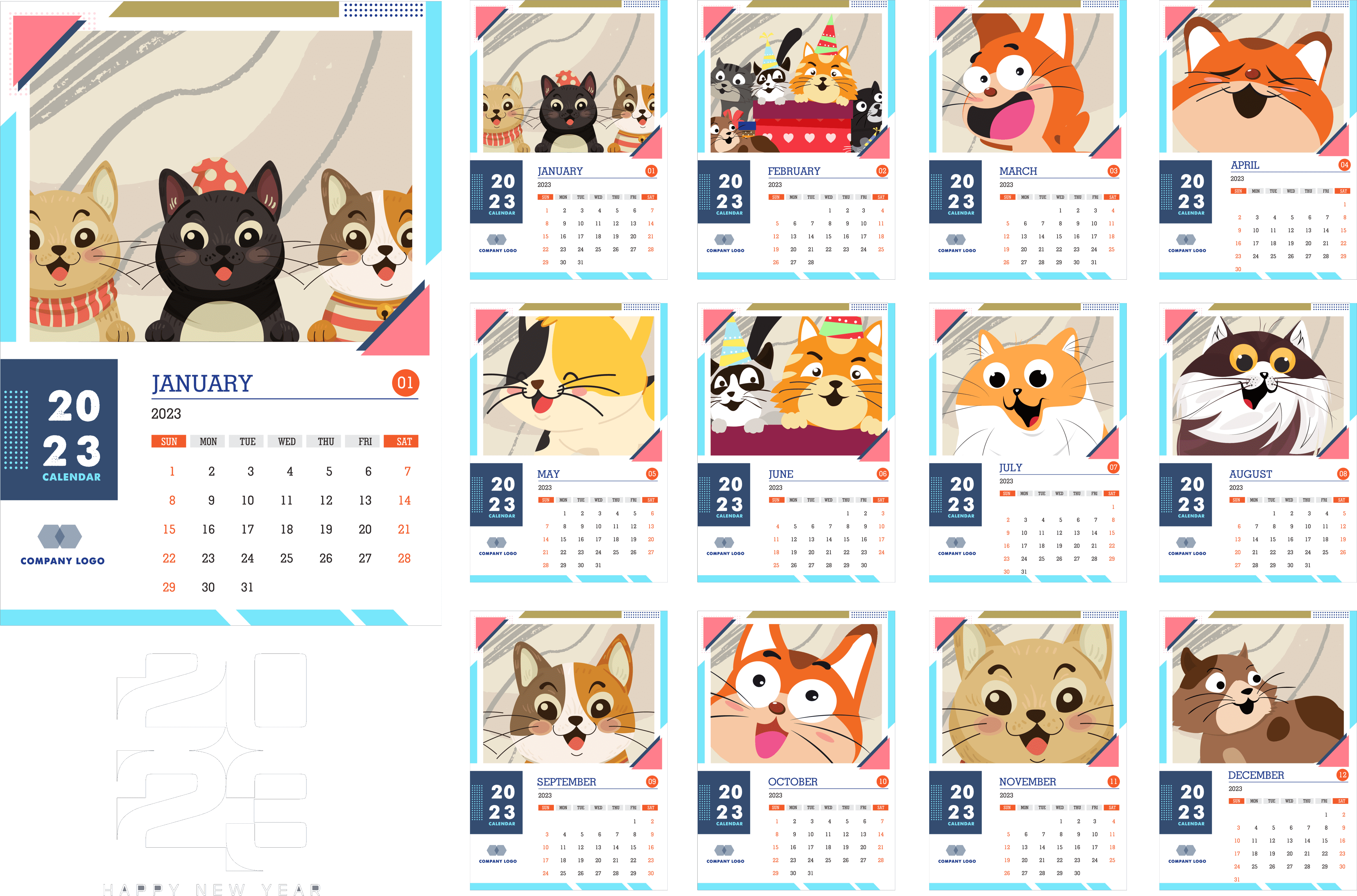 عکس تقویم سال ۲۰۲۳ با طرح های حیوانات دوست داشتنی برای چاپ