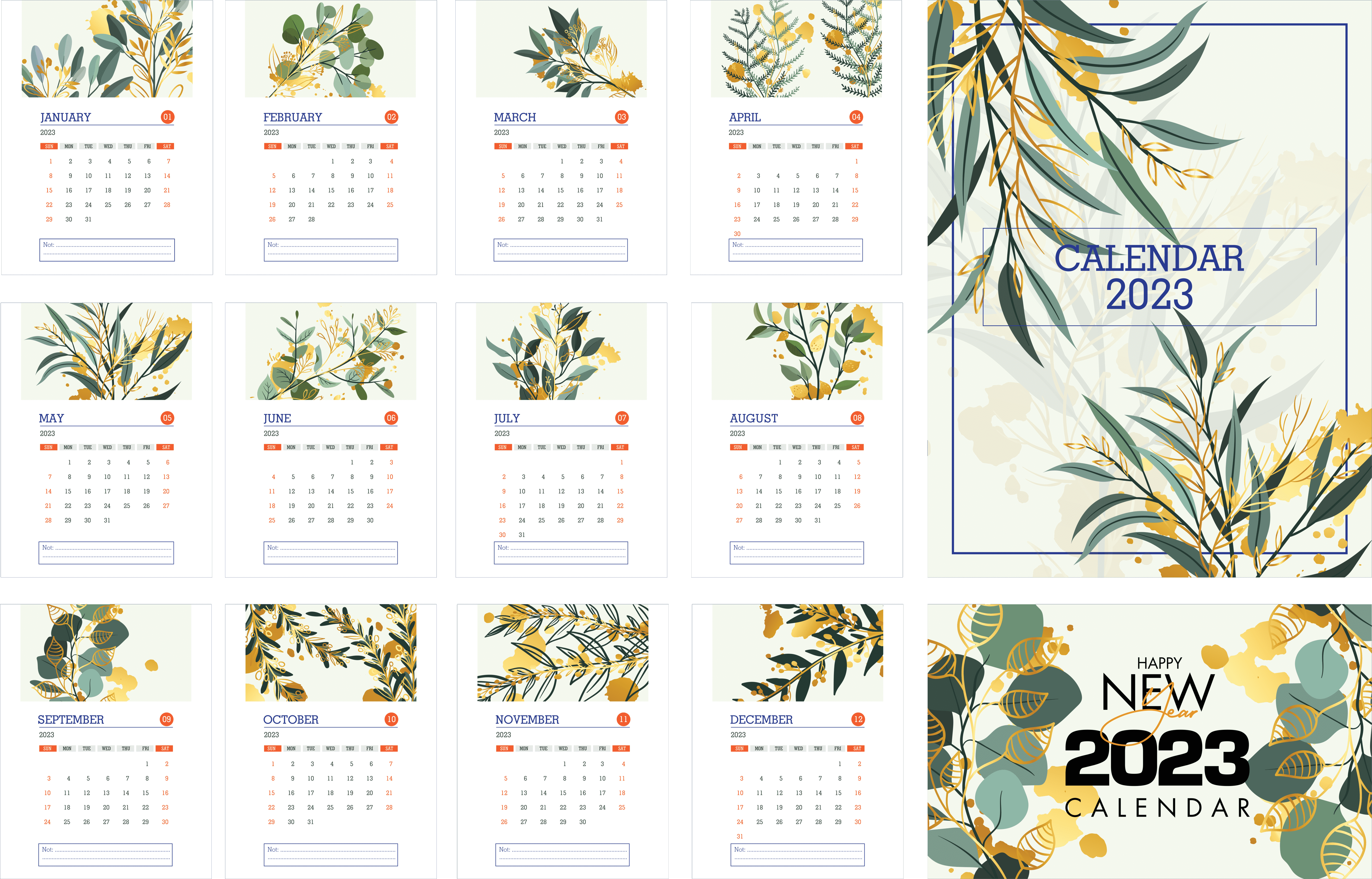 عکس دفترچه تقویم سال میلادی 2023 برای چاپ 4K