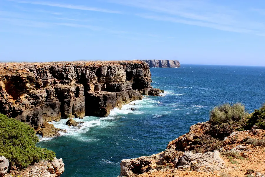 پس زمینه دیدنی از صخره و اقیانوس پر خروش و آسمان صاف با کیفیت 8K