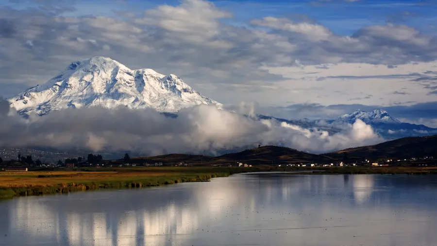 عکس استوک منظره ی رویایی از کوه های برفی و دریاچه