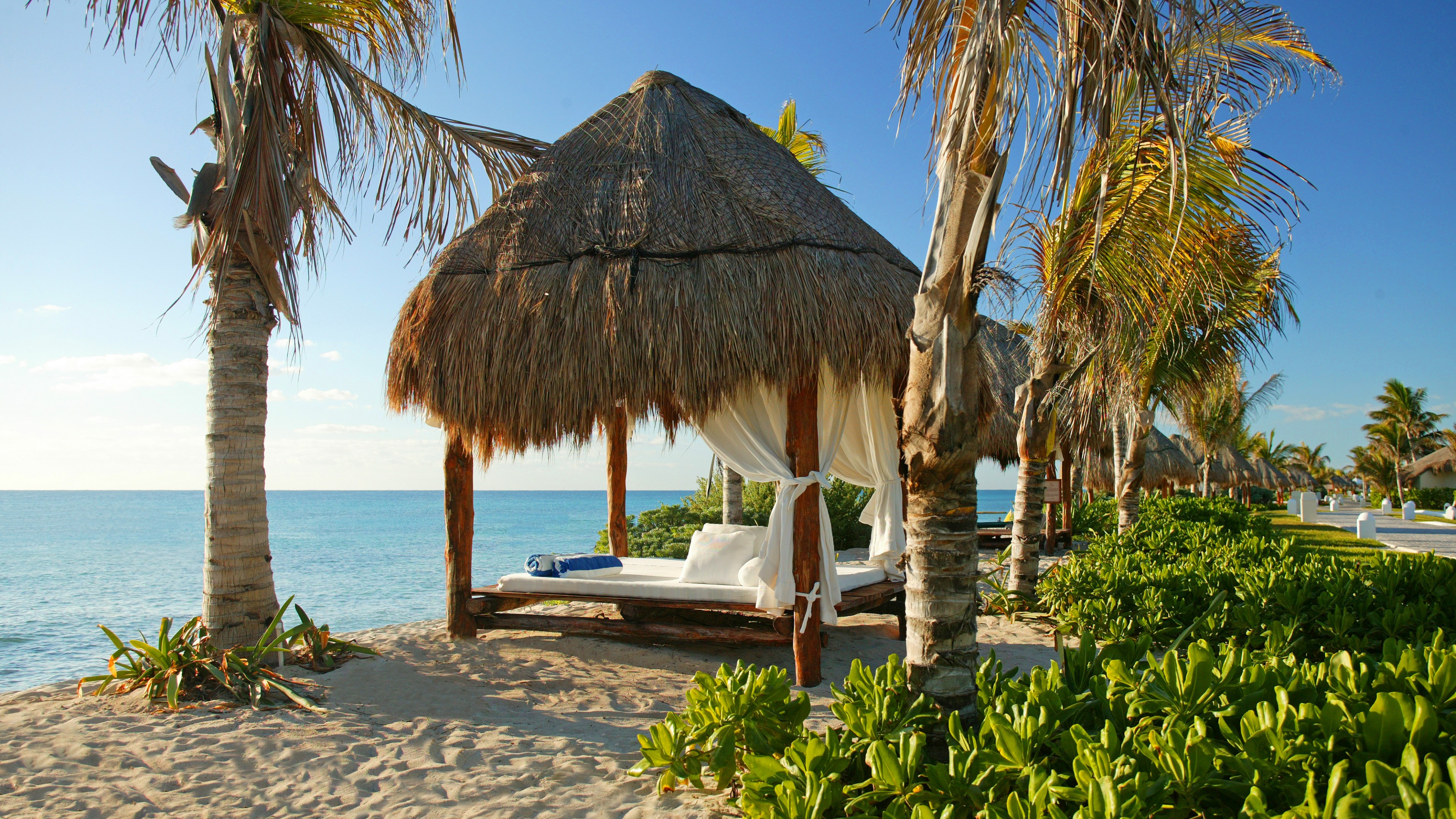 عکس پروفایل از ساحل کنار دریا و الاچیق های زیبا با خرده چوب با کیفیت HD