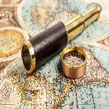 عکس پروفایل از تلسکوپ قدیمی بر روی نقشه کاغذی جهان با کیفیت اچ دی