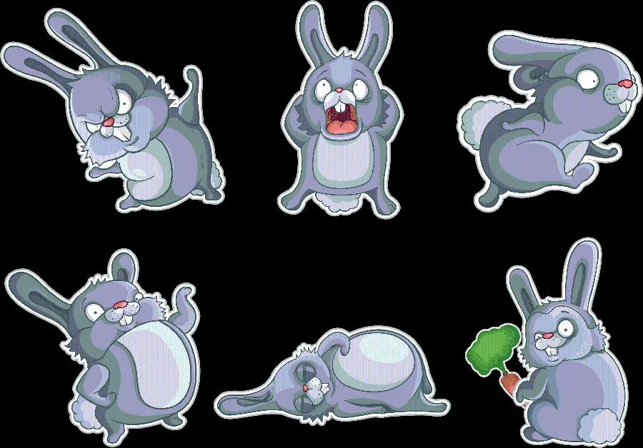 عکس با کیفیت نقاشی خرگوش در حالات مختلف PNG