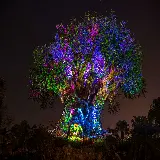 تصویر درخت زندگی در زمینه ی رنگارنگ شب پر ستاره رویایی