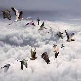 تصویر فانتزی و جالب پرواز انواع پرنده ها بالا تر از ابرها