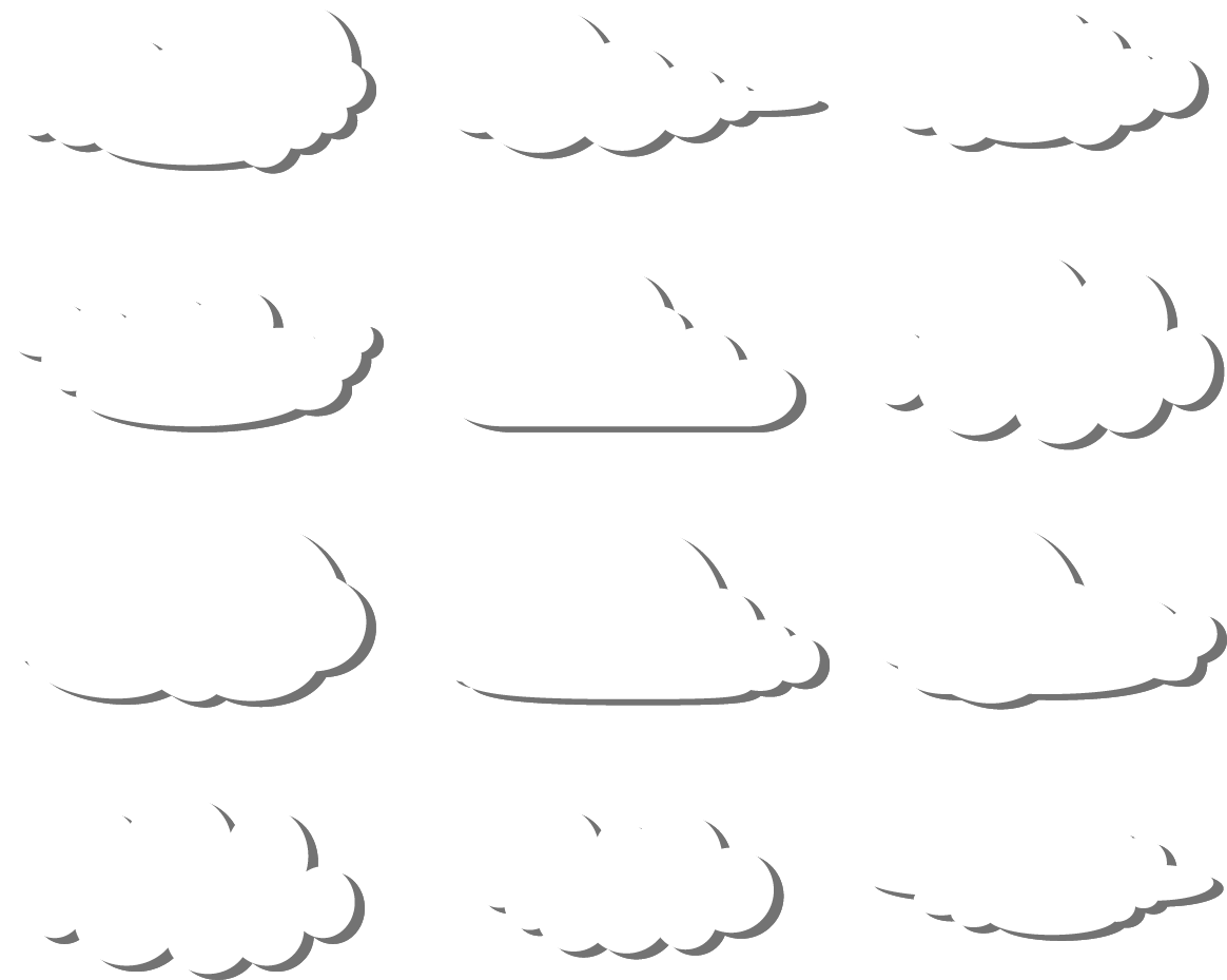 تصویری از تعداد زیاد ابر های کارتونی و نقاشی برای انیمیشن