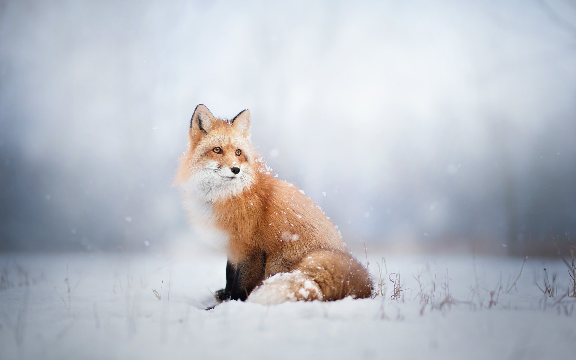دانلود پس زمینه کیوت و بامزه روباه نارنجی در برف برای لپ تاپ