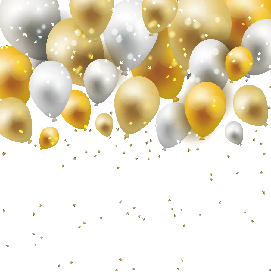 زیباترین عکس بادکنک های سفید و طلایی درخشان با فرمت PNG رایگان