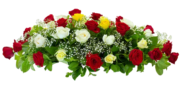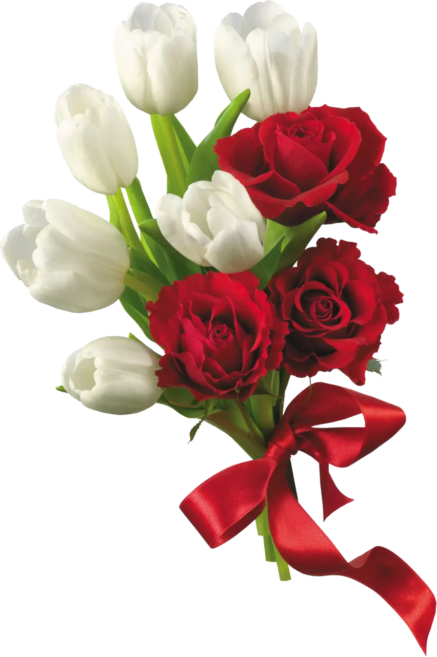 دسته گل تحسین برانگیز به رنگ سرخ و سفید در یک قاب زیبا بدون پس زمینه png