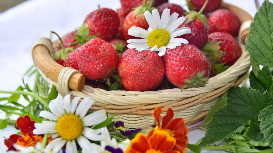عکس والپیپر با حس خوب و قشنگ از توت فرنگی های تازه درون سبد