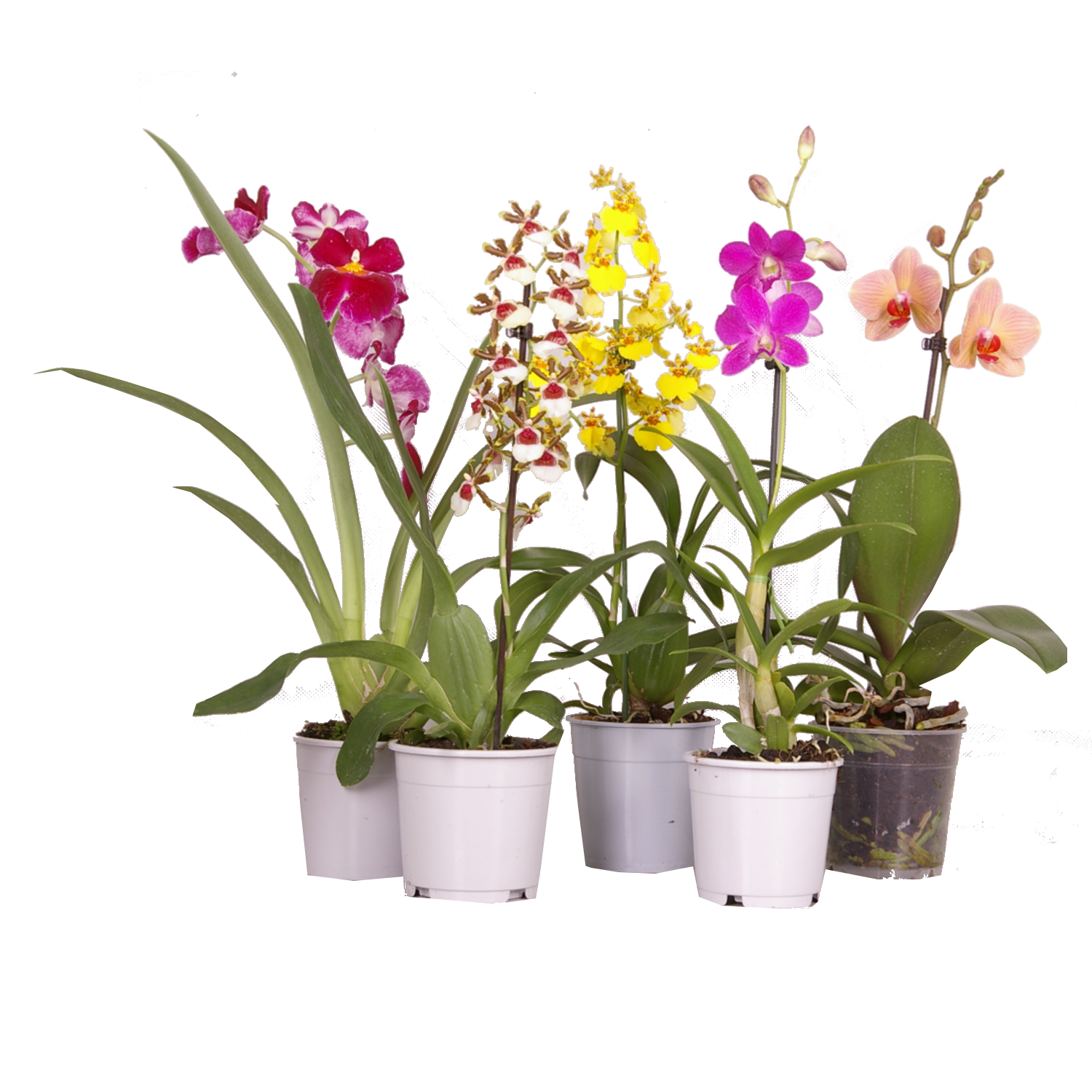 تصویر انواع ارکیده گیاه آپارتمانی با رنگ های متفاوت در کنار هم png