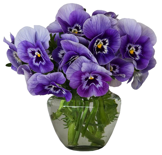عکس گلدان شیشه ای با گلهای بنفش طبیعی با فرمت png