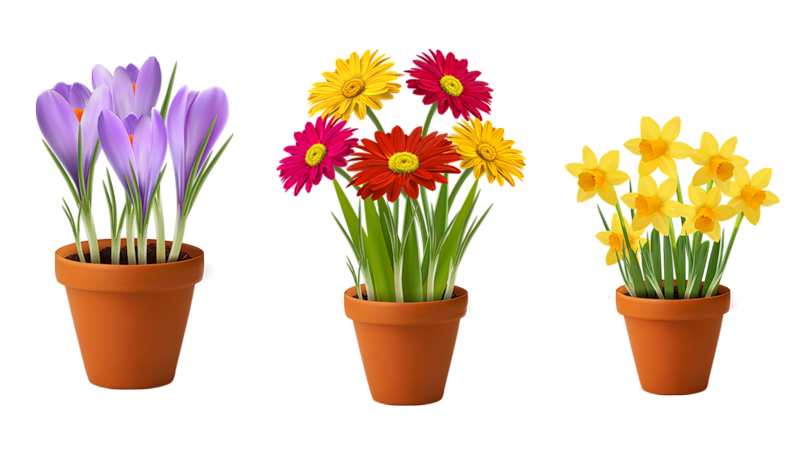 تصویر سه عدد گلدان png دوربریده شده مناسب برای کارهای گرافیکی